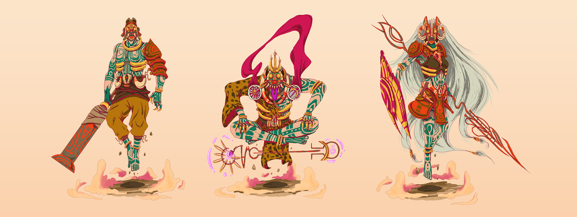 Three Immortal Warriors who command the fields of battle. Only by being summoned through a blood sacrifice do they emerge from their prison to change the tides of war.